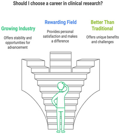 While many students consider careers in medicine, pharmacy, or research labs, clinical research offers a unique blend of science, innovation, and global exposure. It’s often more dynamic and fast-paced, with opportunities to work with multinational companies, travel, develop new skills and earn higher than regular salaries. Plus, it’s less stressful than some traditional medical careers, with a focus on research and development.